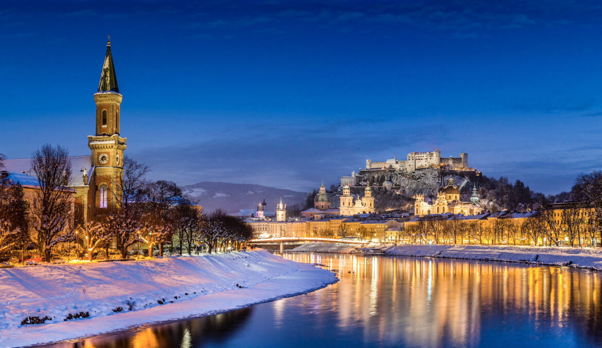Peak holiday magic arrived when we landed in the grand city of Vienna, known for its glittering palaces, plentiful museums, constant parade of horse-drawn carriages down its cobblestone streets, and lavish cafes meant for devouring sweet temptations such as strudel and the rich Sachertorte. While Vienna is stunning any time of year, the beauty is only enhanced during the holidays when its streets are elegantly dressed in giant chandeliers, cascading lights, and hovering angelic hosts. After a full day of sightseeing, we made a beeline for the fabled Rathausplatz Christkindlmarkt, where the moment we arrived a giant red heart shot across a line above the crowd causing everyone to stop and gasp in amazement, as a band broke into festive tunes. Wondrous surprises line the surrounding park, from a tree adorned with hundreds of glowing red hearts to a dreamy carousel and stalls selling delicate glass ornaments and baubles made by Austrian artisans. Renowned for its musical legacy—both Beethoven and Mozart called Vienna home—AmaWaterways capped the night with an unforgettable classical music concert in a palace where dancers waltzed across the stage as musicians played.